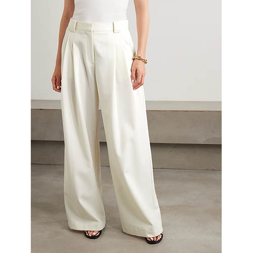 Anahtar Tasarım: Kolsuz yaka yelek + yüksek belli geniş bacak pantolon, vücudu güzelleştiren kesim