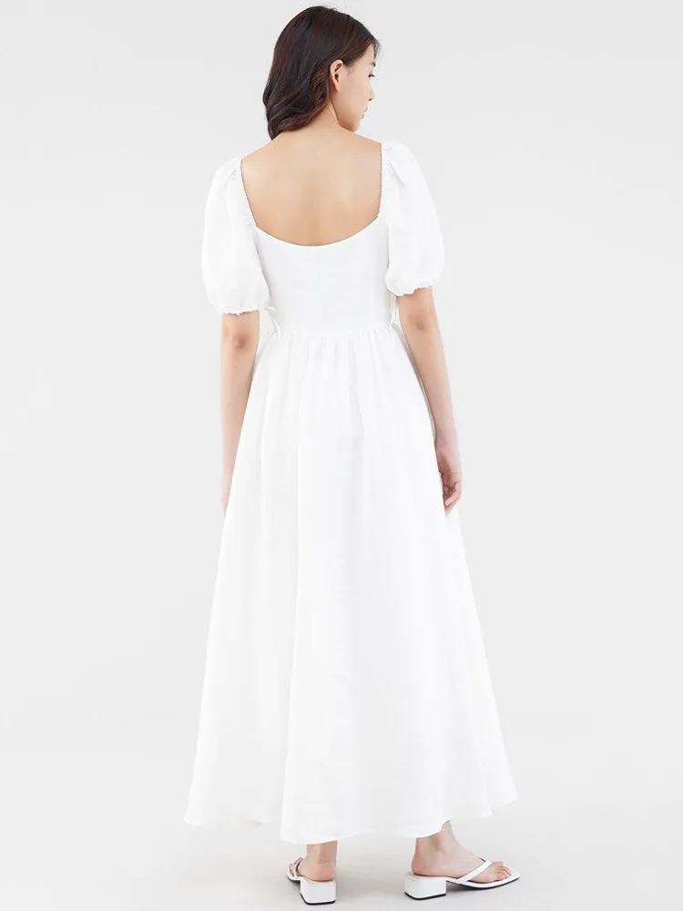 Kısa Kollu Pamuklu Keten Maxi Elbise Detayları